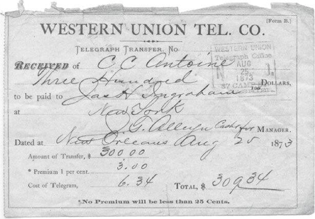 Рис. 2.1. Перевод Western Union, совершенный в 1873 году