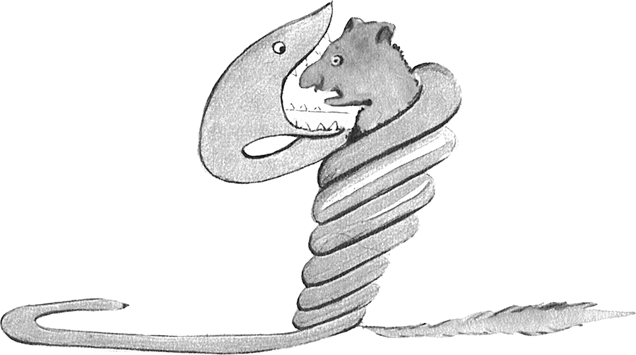 В книге говорилось: «Удавы заглатывают свою добычу целиком, не прожевывая. После чего больше не могут двигаться и спят на протяжении шести месяцев, переваривая добычу».