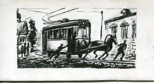 трамвай стал перевозить пассажиров, к железнодорожной станции можно было добраться пешком, извозчиком или рабочим поездом. Построенный по проекту студентов и преподавателей горного института, трамвайный путь было нечем опробовать: не было троллей, не было вагонов. Сначала отыскали маленький паровичёк и пустили по рельсам, затем вагон по рельсам протащила лошадь — обычная для того времени движущая сила. Старожилы помнили это время, когда в начале ХХ века первые трамваи передвигались на конной тяге перед началом запуска основного движения по линии. Большую часть транспорта в центре и вокруг центра города, на окраинах представляли тогда телеги и грунтовые дороги.