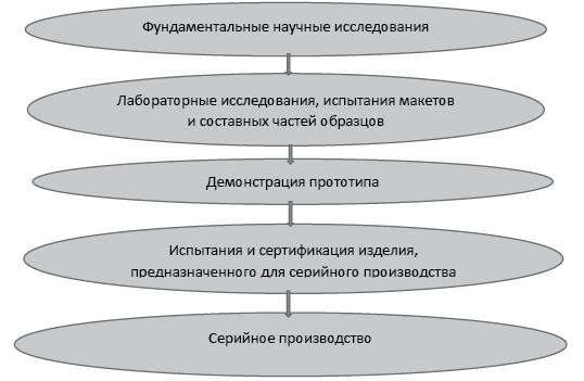 Исходя из общих подходов национальных стандартов стадии жизненного цикла инновации (инновационного изделия), предполагающей промышленное внедрение и запуск в гражданский оборот, представлены на схеме 1.
