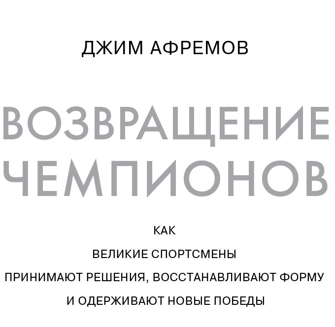 Возвращение чемпионов: Как великие спортсмены принимают решения, восстанавливают форму и одерживают новые победы / Джим Афремов ; пер. с англ. А. Григорьевой и Д. Ключаревой. — М. : Азбука Бизнес, Азбука-Аттикус, 2020.