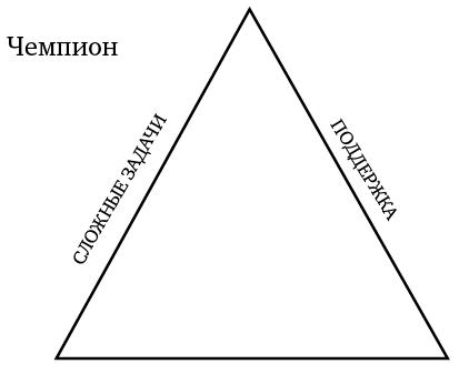 Чемпион же, напротив, ищет сложные задачи и возможность учиться и расти, не пренебрегает поддержкой и советами других людей, в том числе тренеров и товарищей по команде. Его взгляд на игру можно изобразить как треугольник, который смотрит вверх.
