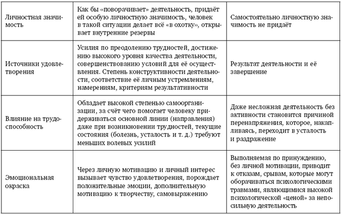 7. Выполняемая по принуждению, без личной мотивации, деятельность приводит к отказам, срывам, которые могут оборачиваться психологическими травмами, являющимися высокой психологической «ценой» за непосильную деятельность. В конечном счёте чем может порадовать деятельность? Результатом и тем, что она, наконец, закончилась.