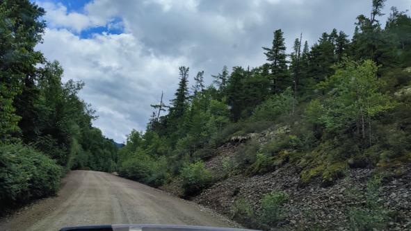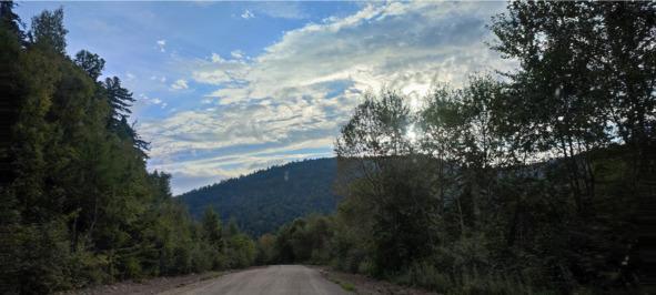 На самой вершине перевала «Таежный», на развилке, повернули налево вверх, на север. Прямо вниз, на восток, дорога пошла в направлении деревни «Малая Кема».