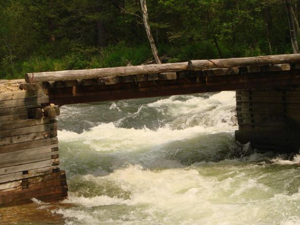 Бурлящий, страшно стремительный, зеленовато-серебристый поток перехватывал тонким хлипким пояском невзрачный дряхленький мостик, сделанный из когда-то могучих цельных, а теперь уже почти истлевших подгнивших бревен, и сверху просто засыпанный грунтом с ближайших обочин.