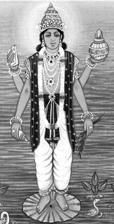 Рис. 3. Изображение Дханвантари с целебными травами и сосудом амриты в руках