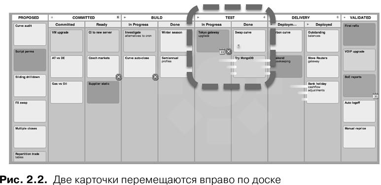 Теперь посмотрим, что происходит на рис. 2.2, когда карточки перемещаются вправо, причем как внутри, так и (что важно) за пределы выделенной зоны.