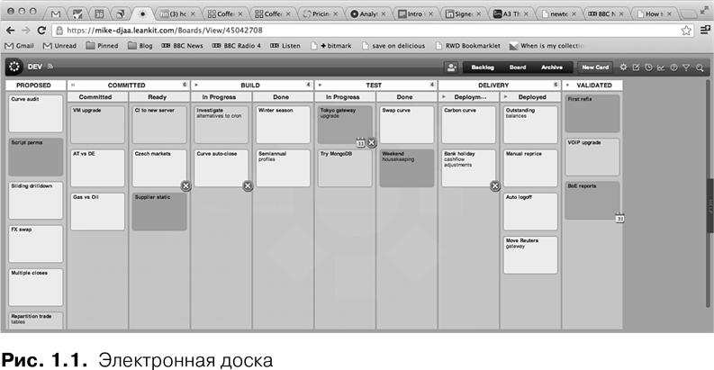 В этой книге рабочие элементы представляют собой четко определенные элементы интеллектуальной работы, например характеристики продукта, который надо создать, или заявки на обслуживание, которую необходимо выполнить. Они не обязательно связаны с разработкой программного обеспечения — мы видели примеры использования метода юристами, отделами кадров, отделами продаж и генеральными директорами. Во всех этих случаях большая часть работы выполняется в головах или в компьютерах сотрудников. Без доски работа остается невидимой.