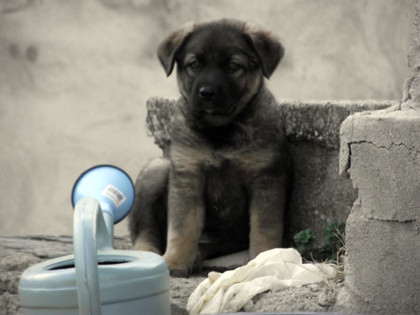 То, что они увидели заставило их смеяться до слез. За забором стоял Пуцко, опершись передними лапами о калитку, и все его тело двигалось в такт виляния хвоста. Складывалось впечатление, что хвост виляет собакой. Его не пустили к столу и он ждал, когда с ним поделятся его любимым лакомством — крекером. Свое нетерпение он выражал виляя хвостом.