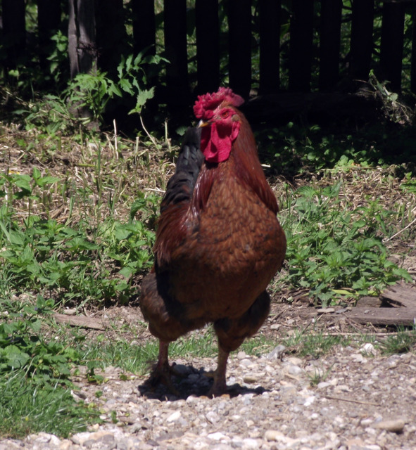 Подрос петушок. Настоящим красавцем стал. Огромный красный гребешок, сам коричневый, как шоколад, а хвост — изумрудный. Ходит важный, своих кур защищает, даже от хозяйки, которая их кормит и поит, каждый раз норовит клюнуть, а клюв у него острый и твердый.