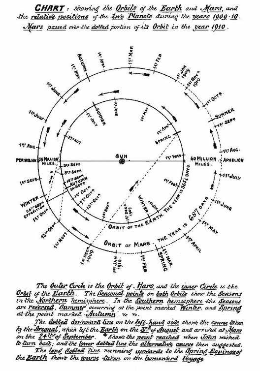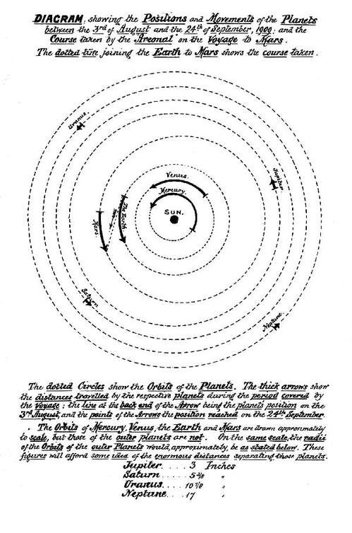 The reader will, of course, understand that whilst the astronomical information is, in all cases, scientific fact according to our present knowledge, the story itself—as well as the attempt to describe the physical and social conditions on Mars—is purely imaginative. It is not, however, merely random imagining. In a narrative such as this some matters—as, for instance, the "air-ship," and the possibility of a voyage through space—must be taken for granted; but the other ideas are mainly logical deductions from known facts and scientific data, or legitimate inferences.