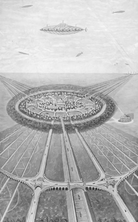View from the Air-ship, over the Canals and the City of Sirapion