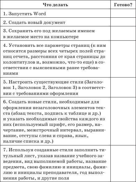 Все описанные действия надо проделывать с только что созданным документом. В качестве совета можно рекомендовать никогда не использовать для оформления своих отчетов чужие файлы (взятые у товарища или даже преподавателя), так как 99,9 % из них – олицетворение вселенского ужаса и примеры того, как не следует делать!