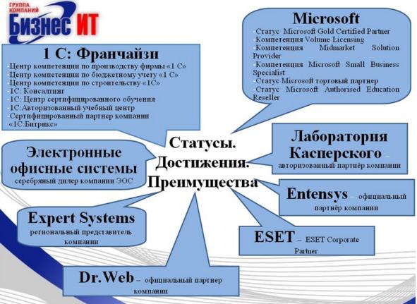 По направлению электронных офисных систем мы являемся партнёром компании «ЭОС», очень активно работаем в этом направлении уже более 5 лет. Есть хорошие успехи в регионе и соседних регионах по внедрению систем документооборота, но рынок здесь в государственных органах. Остальные программные продукты — это дистрибуция, поставка, поддержка. Как и любая IТ-компания, мы являемся партнёрами очень многих компаний, с которыми работаем.