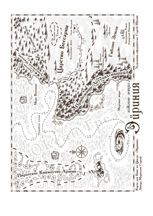Эйриния — мирная и спокойная Страна, простирающая от берегов Океана Грез на западе, до Эфирского моря — на востоке, от Семарийский гор на севере и до южных Аэширских пустынь.