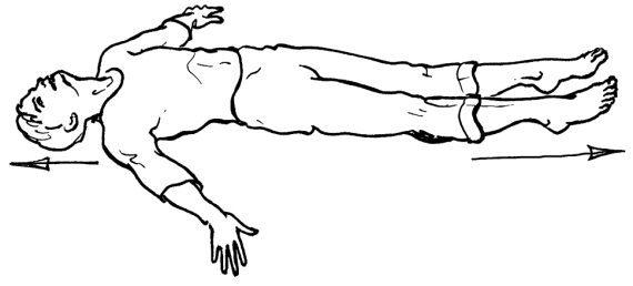 Лежа на спине с закрытыми глазами потянитесь, вытянув пальцы ног и откинув голову. Вытянуть шею до конца. Дать максимальную растяжку всему позвоночнику – так же, как потягиваются кошки. Руки откинуть в стороны. Длительность упражнения 3–5 секунд (рис. 1).