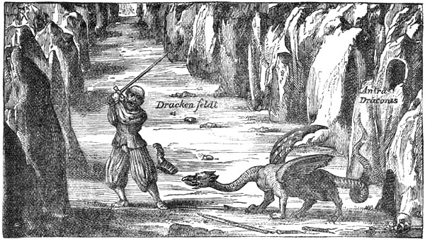 For me the major part of these creatures are not chimeras but objects of rational study. The dragon, in place of being a creature evolved out of the imagination of Aryan man by the contemplation of lightning flashing through the caverns which he tenanted, as is held by some mythologists, is an animal which once lived and dragged its ponderous coils, and perhaps flew; which devastated herds, and on occasions swallowed their shepherd; which, establishing its lair in some cavern overlooking the fertile plain, spread terror and destruction around, and, protected from assault by dread or superstitious feeling, may even have been subsidised by the terror-stricken peasantry, who, failing the power to destroy it, may have preferred tethering offerings of cattle adjacent to its cavern to having it come down to seek supplies from amongst their midst.[1]