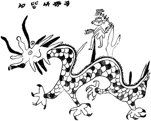 (Facsimile from a drawing by Hokusai, a celebrated Japanese artist