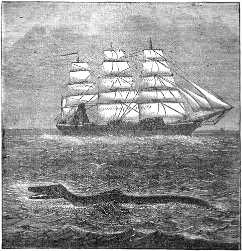 “On the approach of the ship the monster swam swiftly away, leaving a broad track like the wake of a ship, and disappeared beneath the waves.