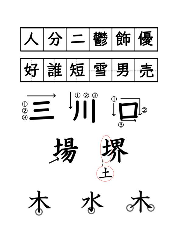 9. All lines are written of the same thickness with a pen (the rule does not apply when kanji are written with a brush).