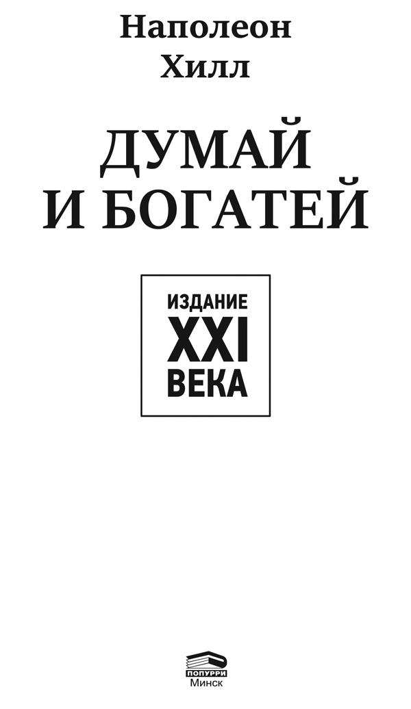 Думай и богатей: издание XXI века / Н. Хилл ; пер. с англ. И. В. Гродель — Минск : «Попурри», 2023.