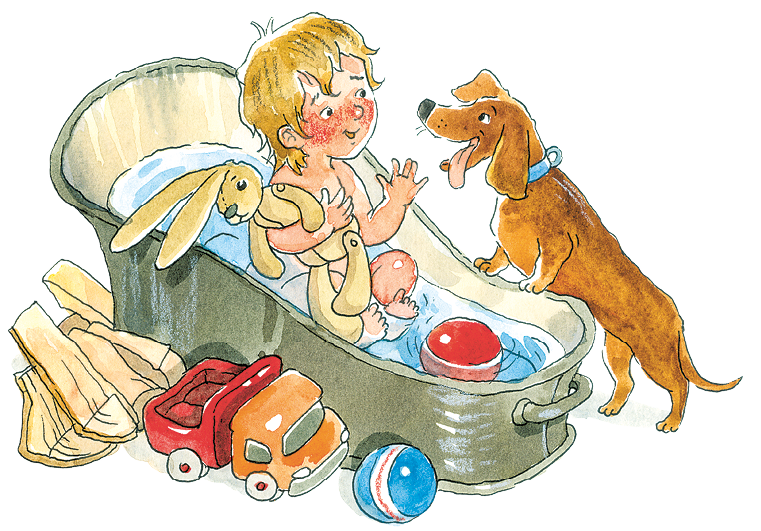 Соне нравилось всё, что происходило в семье после рождения малыша. Всё — кроме гуляния с детской коляской. На улице Малёк просто спал, и катить коляску с ним было невероятно скучно. Младенец спит и спит, а ты идёшь и идёшь… Так вся жизнь мимо пройдёт. Соня же мечтала разбежаться с коляской и пересчитать её колёсами все булыжники. Или скатиться вместе с Мальком с горки. Между прочим, тоже на коляске. Мама, конечно, совсем не разделяла Сонины мечты и была уверена, что детская коляска такой полёт не выдержит. Хвостику оставалось только ждать, когда Малёк подрастёт и пересядет на трехколёсный велосипед.
