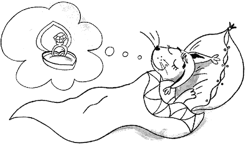 Белке Шишкиной снился суженый в свадебных одеждах Леса Певчих Свиристелей. Предводитель летучих белок принц Нкозана, опустившись на одно колено, протягивал ей красную бархатную коробочку.
