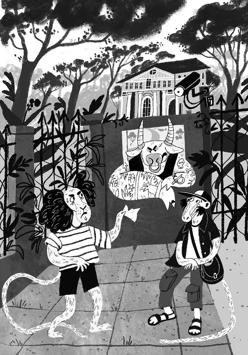 Окончательно настроение бабуинам испортила экономка, чёрная макака Хава. Мало того что она заставила всех снять обувь, так ещё прежде, чем впустить, потребовала вымыть лапы с мылом и нацепить на головы шапочки.