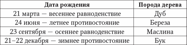 Древние жрецы-друиды считали, что человек был сотворен богами из разных пород дерева, находя в этом большой смысл. По их мнению, каждый из нас связан со «своим» деревом и имеет с ним сходный характер. Наиболее оптимальным будет вариант изготовления комплекта из дерева, предначертанного вам гороскопом друидов. С учетом древней традиции можно выбрать себе соответствующую породу.