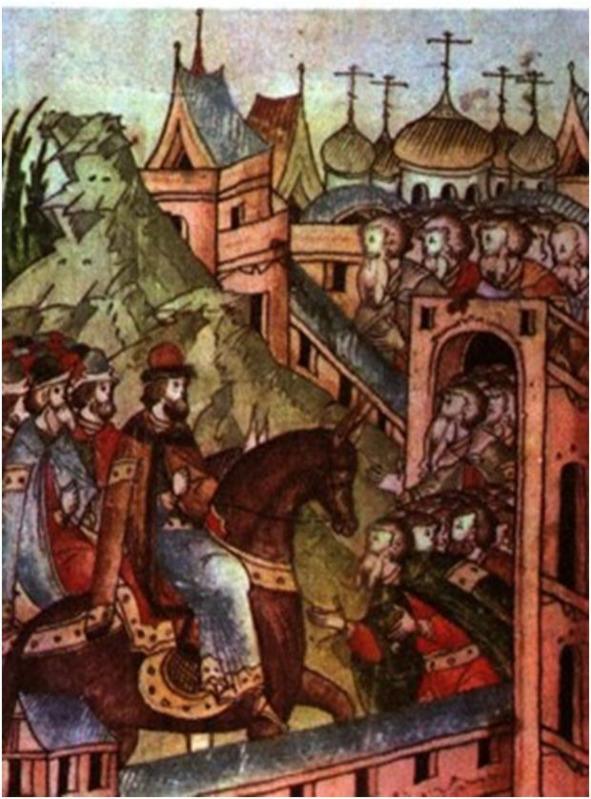 Оседлал он богатырского коня Бурушку и пустился дорогой прямоезжею в стольный Киев-град, чтобы послужить князю киевскому Владимиру Красно Солнышко…