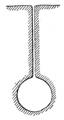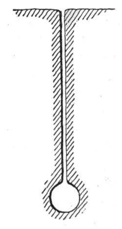 For soft, tenacious material, likely to adhere to the inner sides of the dipper, and not drop out promptly when the bottom door is opened for unloading, the dipper is shaped as shown in Fig. 10, with a larger bottom than mouth. In hard, or dry soft material the section shows parallel sides, as in Fig. 11. For general use the bottom of the dipper should be slightly larger than the mouth, as most materials contain more or less moisture which is likely to produce a partial clogging of the dipper by material sticking to the inner sides, especially between the teeth, necessitating frequent cleaning out whenever the machine is stopped while preparing to move forward, and sometimes oftener. For ordinary clay, cemented gravel, and hard dry materials, a dipper with a wide and shallow mouth, as shown in plan in Fig. 12, is preferred to the one shown in Fig. 13, which latter is better adapted for loose gravel, sand and other soft dry materials where a deep cut can easily be made. For hardpan, shale, loose rock and similar materials, ample strength of teeth and dipper is of greater importance than its shape.