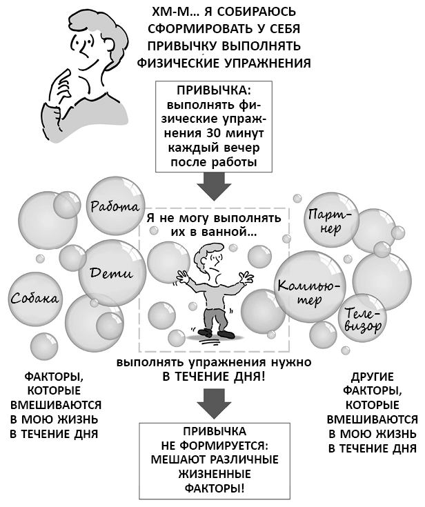 Несколько лет назад я стала замечать, что мои клиенты все чаще и чаще просят меня помочь им сформировать «новую привычку» соблюдать диету, придерживаться плана здорового питания или сделать физические упражнения неотъемлемой частью жизни. «Не понимаю, что происходит, – говорят они. – Кажется, в этом нет ничего трудного, но мне все время что-то мешает, я постоянно отвлекаюсь. Вы можете объяснить, почему так происходит?»