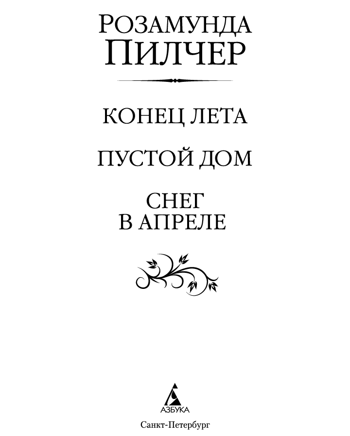 Конец лета ; Пустой дом ; Снег в апреле : романы / Розамунда Пилчер ; пер. с англ. А. Маркеловой, И. Голыбиной, В. Яковлевой. — СПб. : Азбука, Азбука-Аттикус, 2022. — (The Big Book).