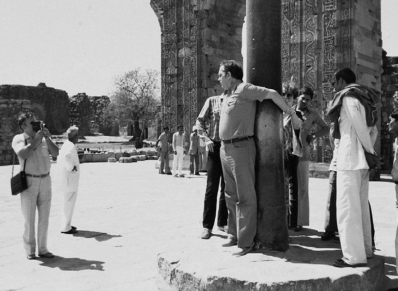 В первый же приезд я отвела папу к знахарке, надо было разбираться с его язвой. Снова очередь, прощупывание пульса и таблетки-катышки. Помогло на какое-то время, надо сказать. Ездили к Кутуб-минару, к важному минарету, который давным-давно поставили рядом с необычной железной колонной, воткнутой в землю, как гвоздь, под прямым углом. Вокруг нее – сильное исцеляющее энергетическое поле. Всегда очередь из страждущих. Подходят, трутся. Говорят, надо правильно встать к ней спиной и соединить руки сзади, чтобы позвоночник соприкоснулся с важной железякой, тогда – и здоровье, и счастье, и вообще. Привела родителей, пригвоздила к колонне, пусть, думаю, энергией напитаются. Колонна – из чистого железа, кто ее сделал, как, никто не знает. На ней надпись: «Царь Чандра, прекрасный, – как полная Луна, достиг высшей власти в этом мире и возвел колонну в честь бога Вишну в V веке». Но он же не сам ее делал, не сам возводил, а кто – вопрос.