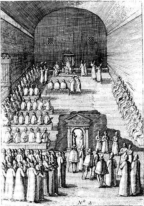 Прием посольства Я. Ульфельдта Иваном VI. Гравюра XVII в.