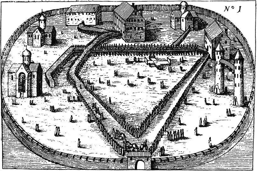 Александровская слобода в XVI в. Гравюра из книги Я. Ульфреда. Нач. XVII в.
