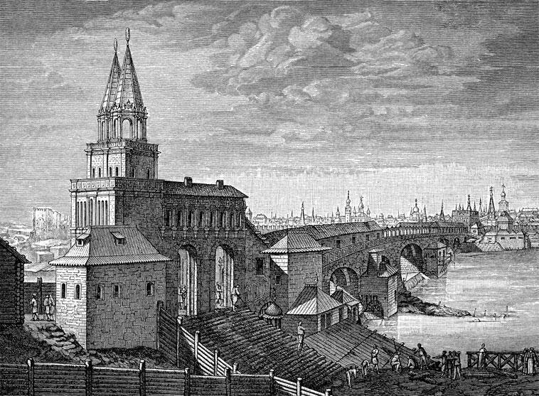 Каменный мост в Москве в начале XVIII в. Гравюра