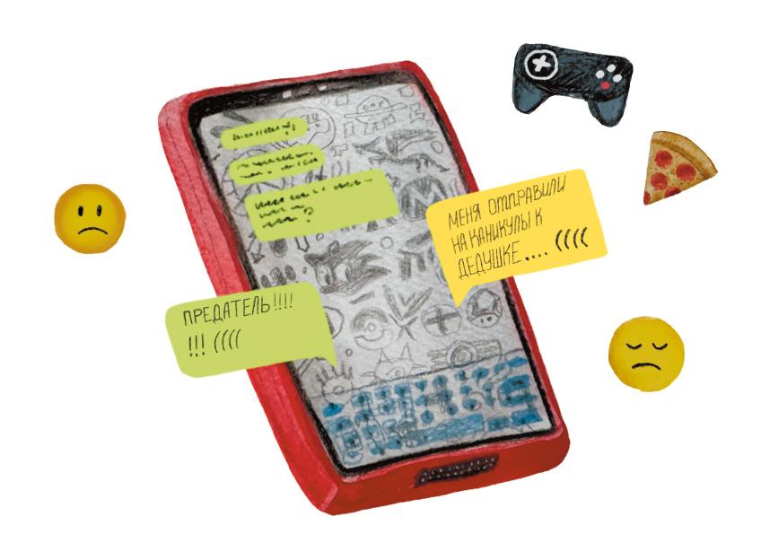 «Мы же договаривались!!! Что устроим на каникулах большую рубиловку! Сам же предложил — поиграем, закажем пиццы?! А потом взял и уехал. Предатель!»