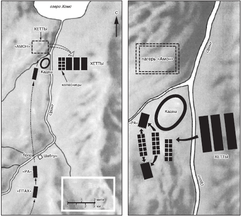 Египтяне умело устраивали засады, но, обладая превосходящими силами, предпочитали воевать в открытую крупными силами. Теперь рассмотрим битву у Кадета между Рамсесом II и хеттами в 1288 г. до н. э., первое сражение в истории, которое можно воссоздать сколько-нибудь подробно.