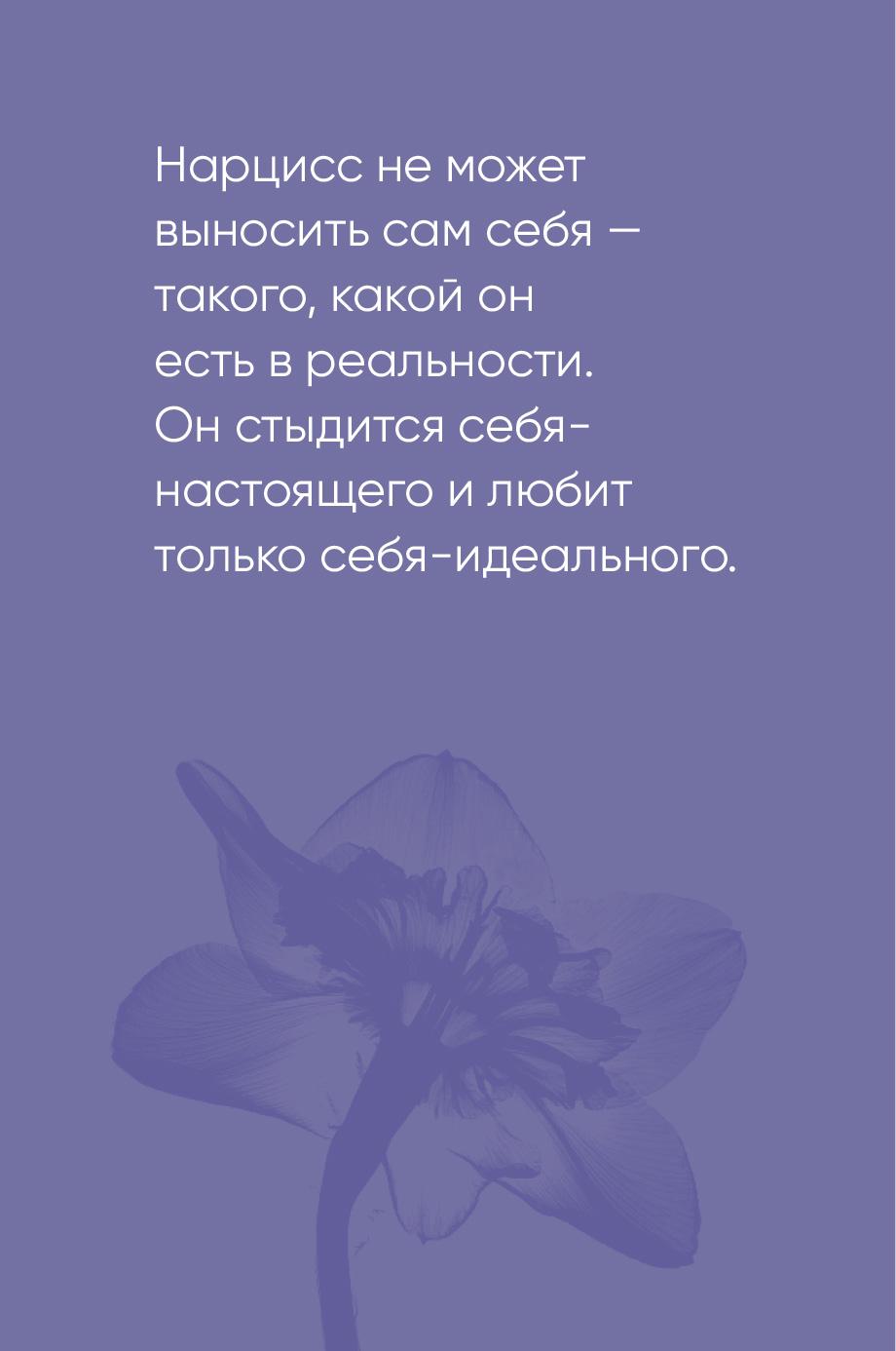 Это книга о том, что такое нарциссический характер, какие преимущества он дает и какие страдания вызывает. Мы поговорим о совершенстве и уязвимости, энтузиазме и скуке, высокомерии и чувстве собственной ничтожности. Без предубеждения и осуждения разберемся, откуда приходят такие непарадные чувства, как стыд и зависть.