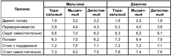 Делаются попытки связать заболеваемость с типами телосложения. В связи с этим Л. А. Николаева (1975) обнаружила, что у девочек не наблюдается выраженной зависимости числа заболеваний за 10 лет жизни от того, какой тип телосложения у них имеется. У мальчиков же средняя заболеваемость снижается от астеноидного типа телосложения к дигестивному. В результате заболеваемость среди детей астеноидного и торакального типа выше у мальчиков, чем у девочек, а у девочек выше заболеваемость, чем у мальчиков, если те и другие принадлежат к мышечному и дигестивному типам.