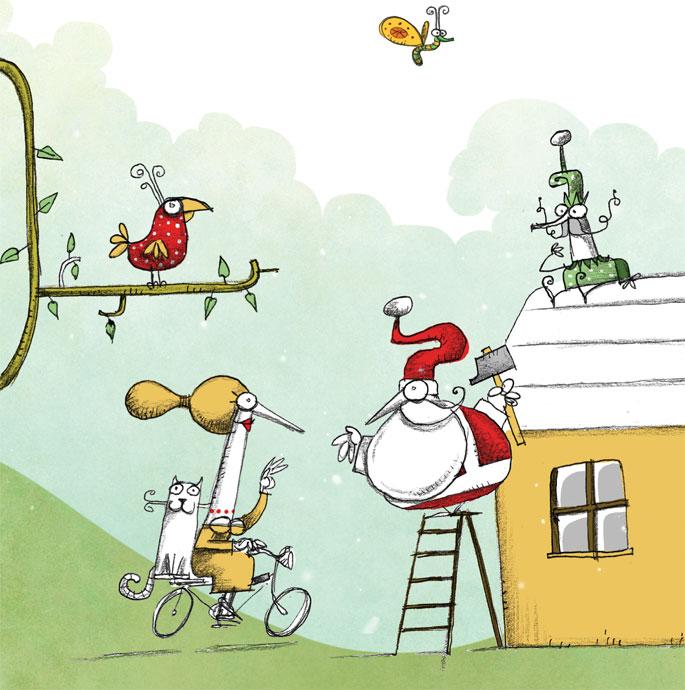 Дед Мороз быстро приспособился и к этим переменам: высадил фруктовые деревья рядом с непременными ёлками, завёл огород (где выращивал в основном свёклу, помидоры и редис, ведь красный — его любимый цвет), а на крыше установил солнечные батареи.