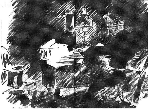 Он говорил тихим, сдержанным голосом. У него были женственные, но не изнеженные манеры. У него были изящные маленькие руки и красивый рот, искаженный горьким выражением. Его глаза пугали и приковывали, их окраска была изменчивой — то цвета морской волны, то цвета ночной фиалки. Он редко улыбался и не смеялся никогда. Он не мог смеяться, для него не было обманов. Как родственный ему де Куинси, он никогда не предполагал — он всегда знал. Как его собственный герой, капитан фантастического корабля, бегущего в полосе скрытого течения к Южному полюсу, он во имя открытия спешил к гибели, и хотя на лице у него было мало морщин, на нем лежала печать, указывающая на мириады лет.
