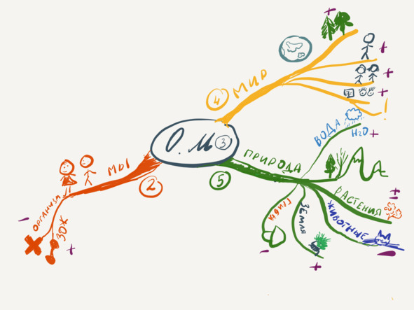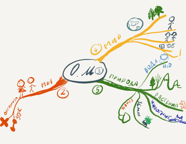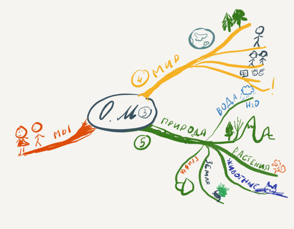 Даже если вы остановитесь на этом этапе, расшифруете только третью часть и больше ничего не будете делать самостоятельно, если до момента начала занятий в школе вы нарисуете эту карту и проработаете ее несколько раз, то, находясь на уроке в классе, когда будут рассказывать о животных или о деревьях, у ребенка информация будет сразу автоматически прикрепляться к одному и тому же нужному блоку. И в момент написания сочинений, контрольных, ответов в тесте, информация будет сразу очень быстро вспоминаться, потому что ребенок будет знать, где она находится.