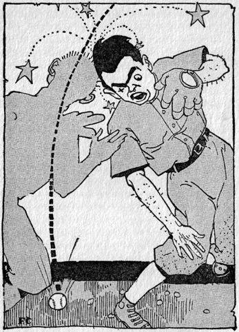 So the officer asked me if I ever done anything besides pitch so I told him about the day I played the outfield in Terre Haute when Burns and Stewart shut their eyes going after a fly ball and their skulls come together and it sounded like a freight wreck and they was both layed out so I and Lefty Danvers took their place and in the 8th. inning I come up with 2 on and hit a curve ball off big Jack Rowan and only for the fence that ball wouldn't of made no stops this side of Indpls.