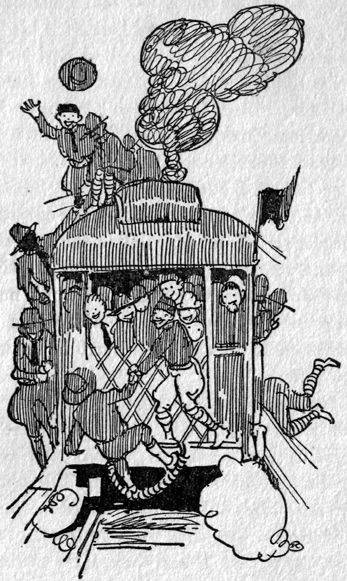 Well Al some alderman or somebody had got a lot of arm bandages made for us with the words Kaiser Killers printed on them and they was also signs stuck on the different cars on the train like Berlin or Bust and etc. and the Stars and Strips was flying from the back platforms so we certainly looked like regular soldiers even without no uniforms and I guess if Van Hindburg and them could of seen us you wouldn't of needed a close line no more to take their chest measure.