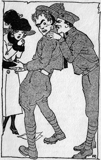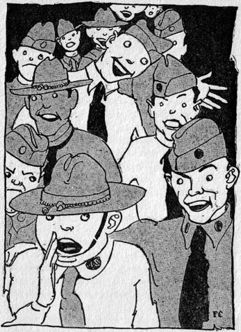 So afterwards I told Shorty Lahey he had made a mistake about Castle and he says "All right and if he is a objecter it is up to us to talk him out of it." So after supper tonight Castle was seting right near me in the recreation room and Shorty come up to him and says "Well Castle haven't you been able to get that party on the wire yet" so Castle asked him what he meant and he says he heard Castle was waiting for a message from somewheres telling him if he should be a soldier or not so Castle didn't answer and begun to read. So Shorty says "You ain't the only one that objects to war but we got to make the world safe for Democrats and you shouldn't ought to object to getting your head blowed off in a good cause." So Castle spoke up and said he didn't object to getting killed but what he objected to was killing other people. So Shorty says "Well then all you got to do is stick along side of me in the trenches and when you get orders to go over the top you can slip me your gun and bayonet and I will see that they don't nobody sneak off with them dureing your absents." So then Castle got up and walked out on us.