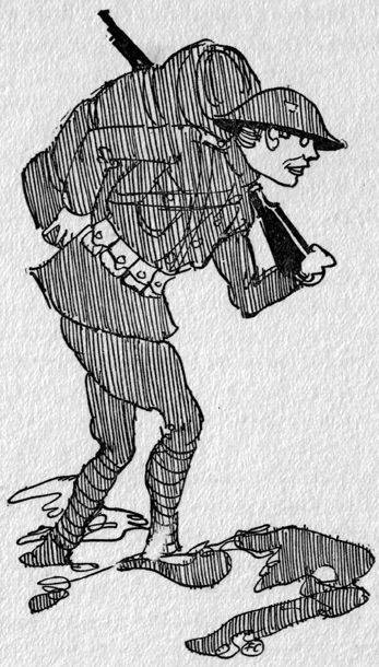 Well the trombone blower finely blowed himself to a nap and while he was asleep a little guy snuck the trombone away from him and says "Look here boys I am willing to give my life for Uncle Sam but I am not going to die to no trombone music." So he throwed the trombone out of the window without opening the window and the guy woke up that owned it and the next thing you know the Kaiser Killers was in their first battle.