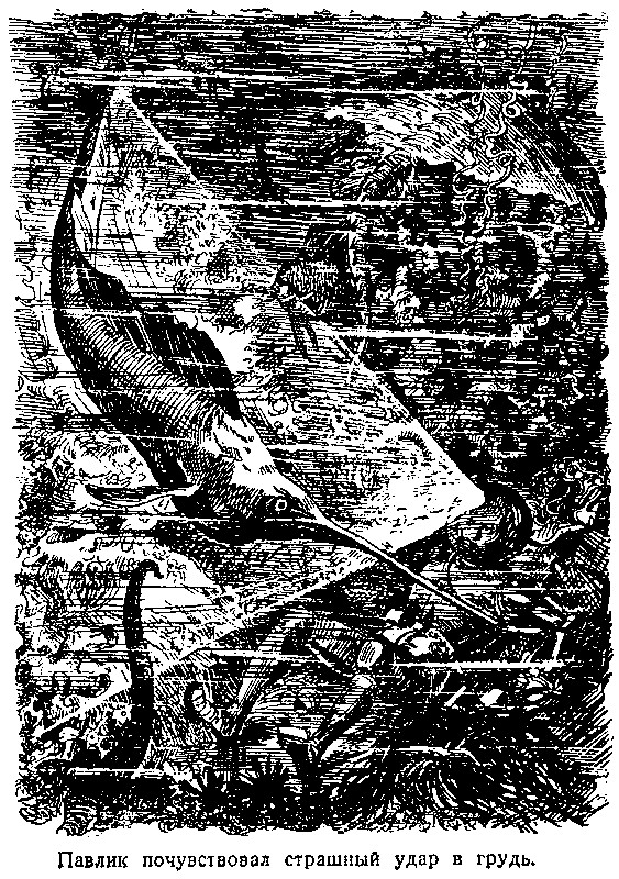 Павлик не выдержал и закричал от ужасной боли. И в тот же миг, как будто испугавшись этого крика, осьминог ослабил свои чудовищные объятия и поднял высоко над собой — почти на десять метров — огромные, как удавы, руки.