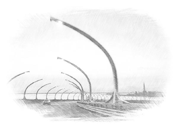 Графический рисунок по фотографии, сделанной мной на автомагистрали «Западный Скоростной Диаметр» в г. Санкт-Петербург в августе 2019 года.